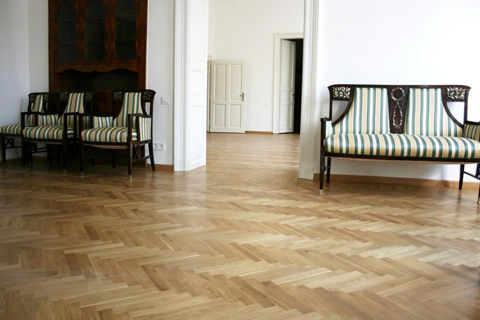 De această dată vă prezentăm un interior deosebit, într-o clădire veche, în care am montat pe un sistem de șapă un parchet de tip "brăduţ", cu o bordură de tip "cartuş",